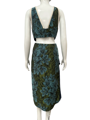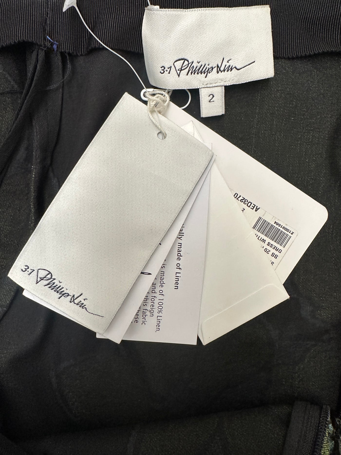This stunning 3.1 Phillip Lim midi dress features a unique asymmetric construction combining a textured floral jacquard bodice with a contrasting pinstripe cascading skirt. The piece blends refined tailoring with the brand’s signature artistic edge.