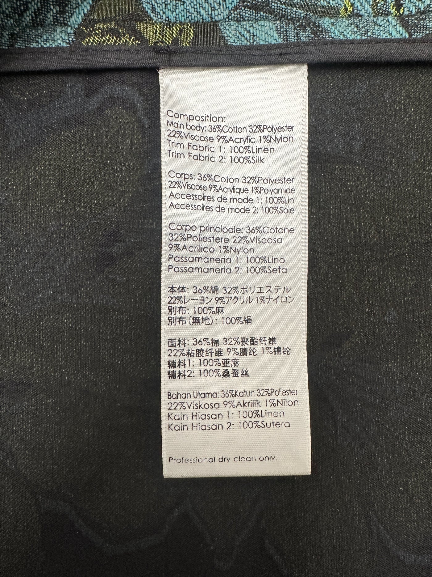 - 36% cotton - 32% polyester - 22% viscose - 9% acrylic - 1% nylon